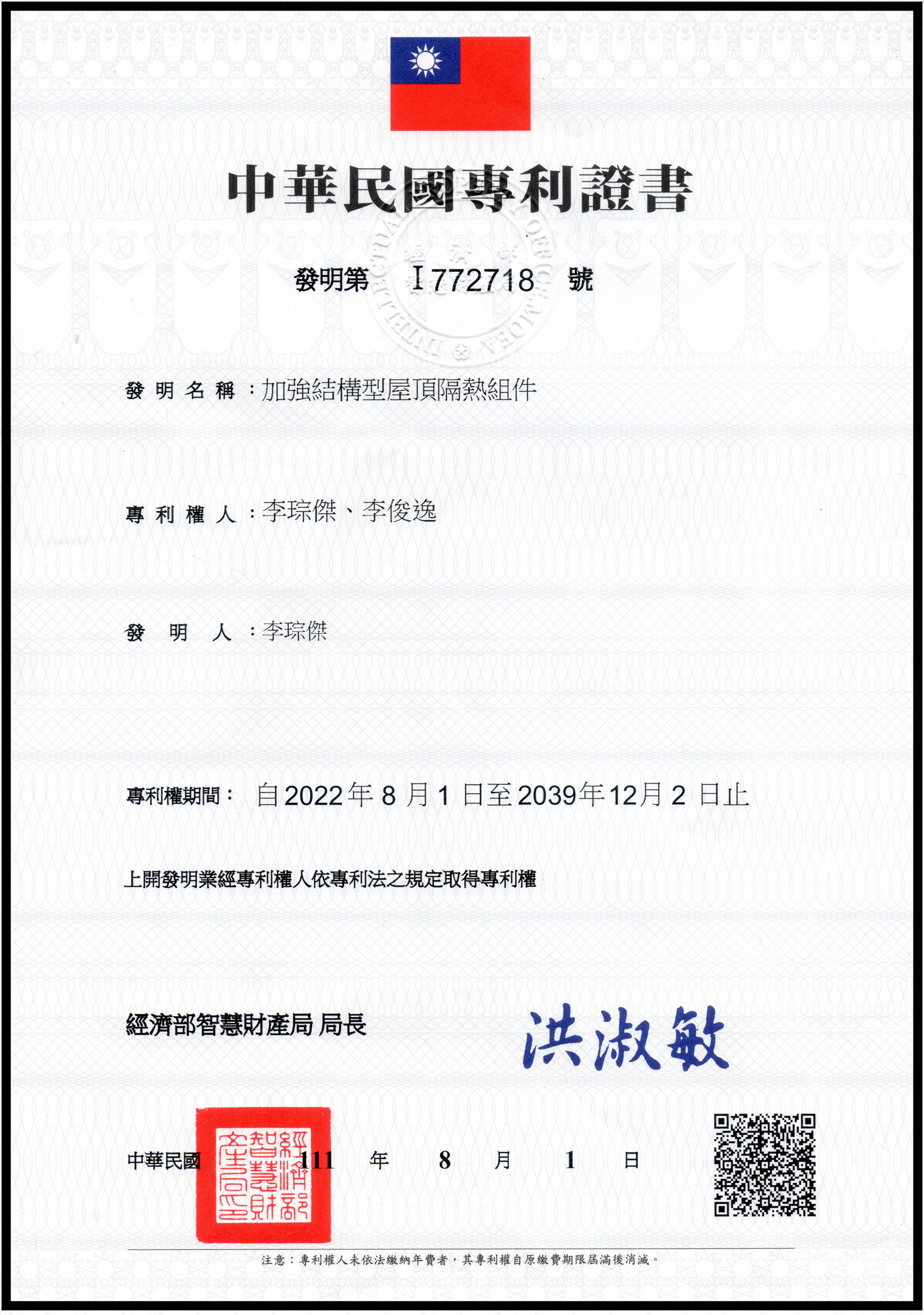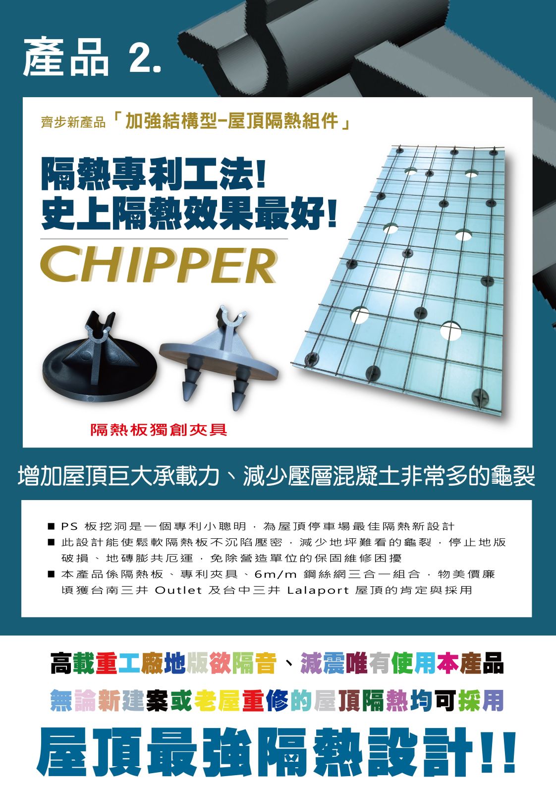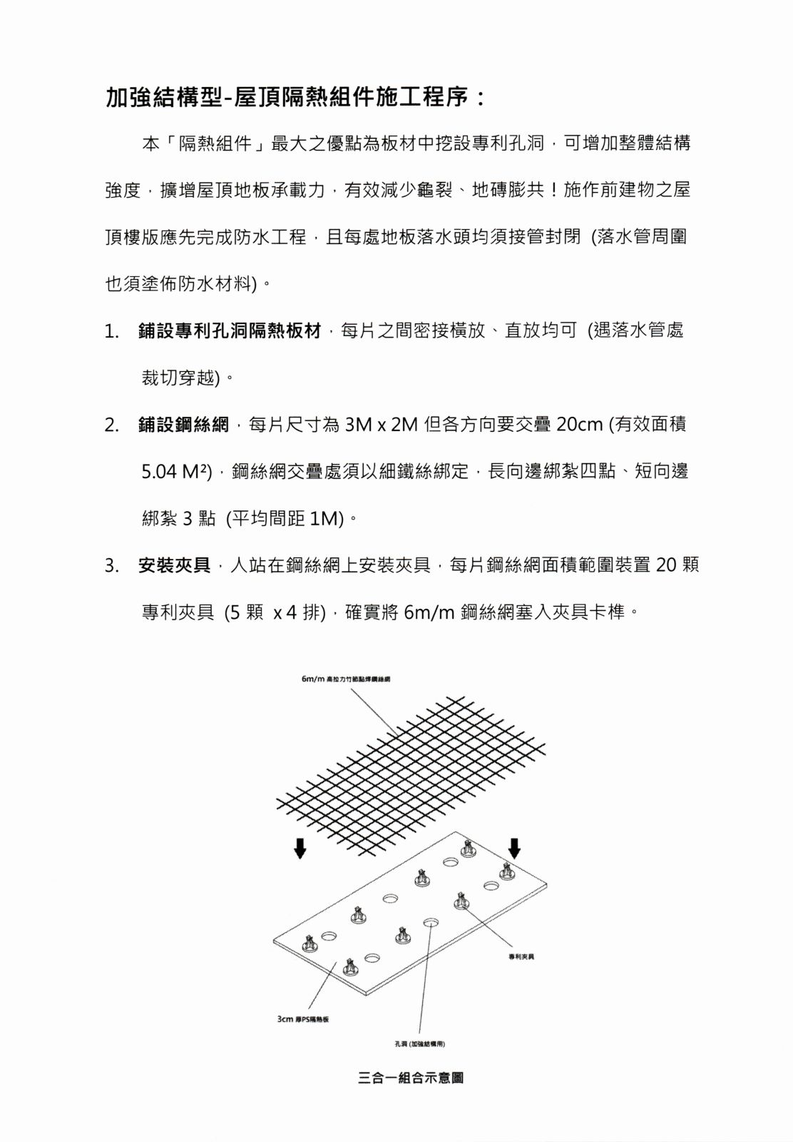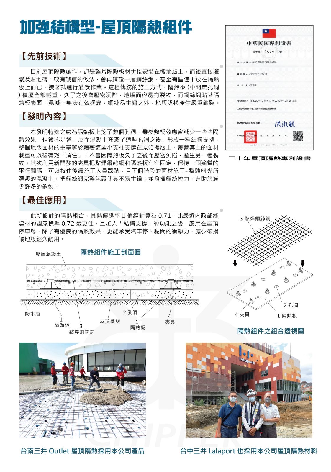 「加強結構型-屋頂隔熱組件」一推出即獲佳評,尤其受到最重品質日系廠商的大賣場青睞,因為其屋頂除了要求優良隔熱效果外,也兼做停車場所,更需要有加強結構的屋頂隔熱設計!