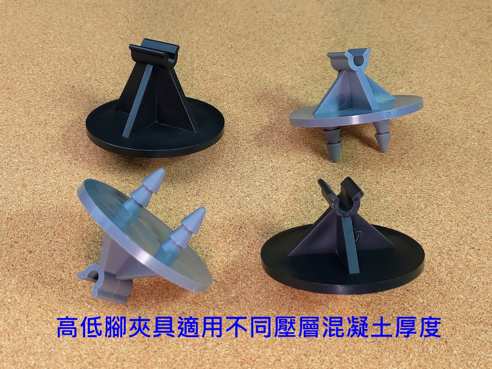 即使規規矩矩墊上水泥塊,水泥墊塊非常容易滑移,鋼絲網照樣不易維持標準的混凝土保護層,等於減低了抗混凝土龜裂之拉力。齊步專用夾具全國獨創,輕便容易安裝又能把鋼絲網牢牢夾住,整體堅固、耐施工人員踩踏不滑脫,對於防止壓層混凝土的龜裂有極大助益。